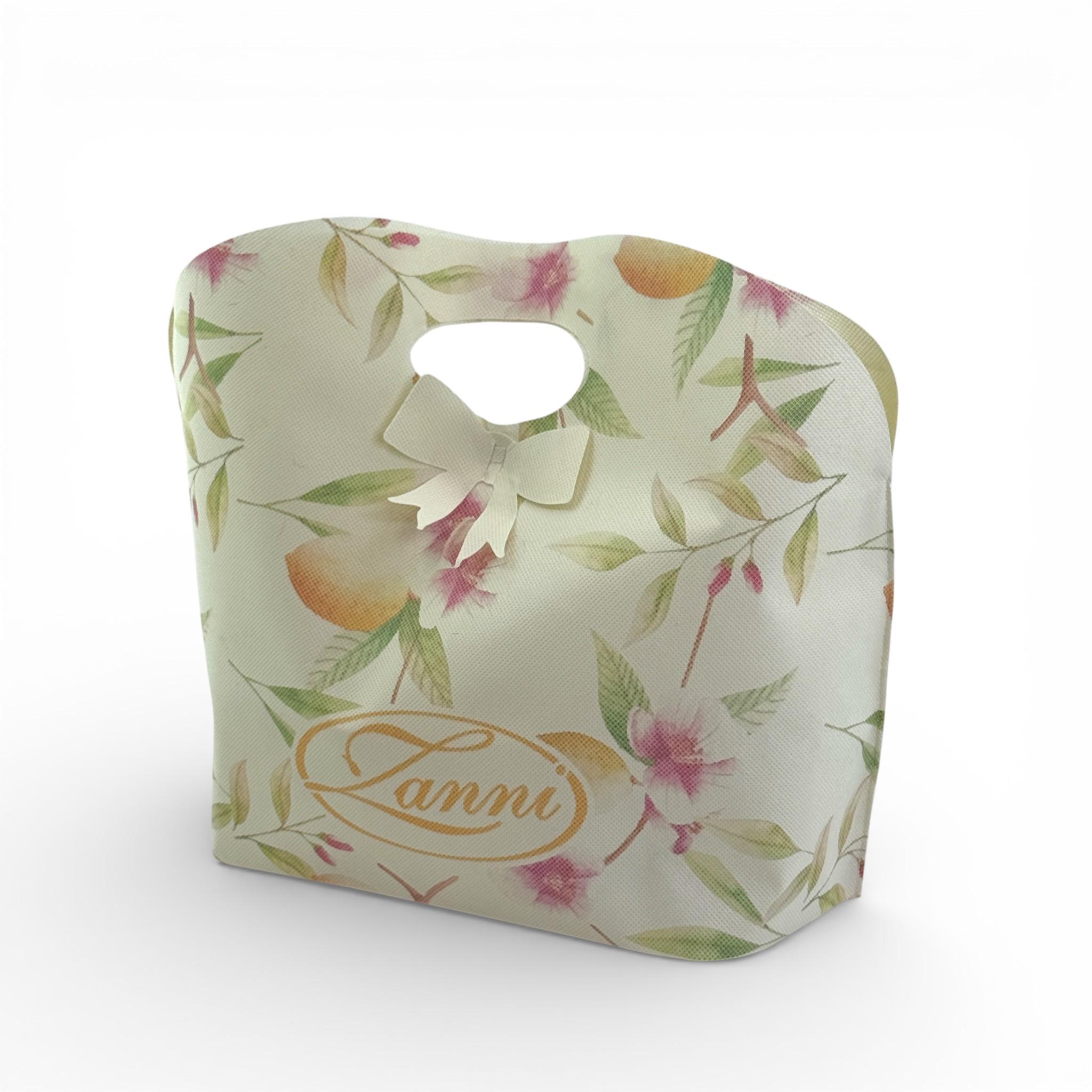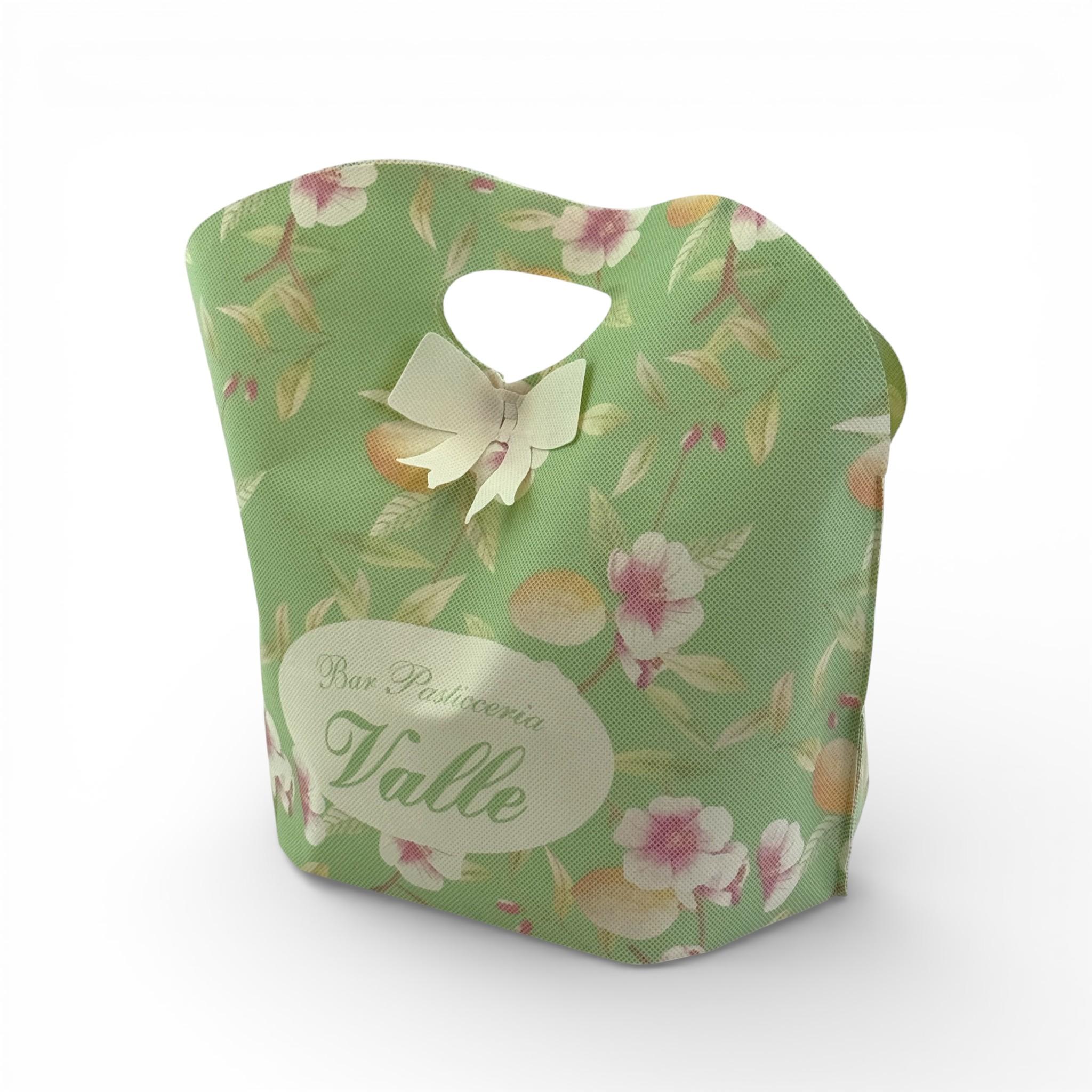 Viene applicata alla busta uno strato aggiuntivo di TNT sagomato, dove possono essere stampati (digitalmente o in serigrafia) anche i loghi più complessi o articolati.